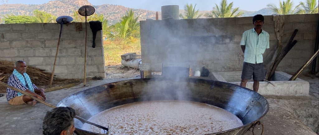 At The Farmhouse, we grow our own sugarcane and manufacture our own jaggery. This farm to finished product approach ensures quality control, purity, and full traceability. Our jaggery is free from artificial additives, synthetic chemicals, and bleaching agents.